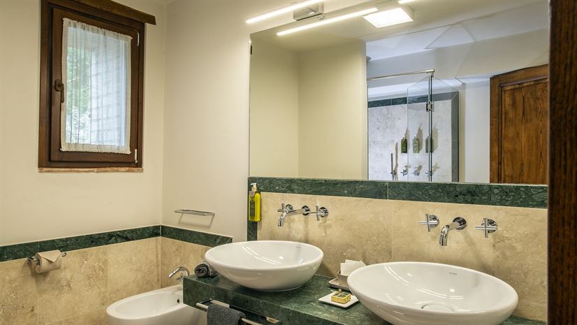 Built from local stone, Casa Pernice boasts covered pergolas, a pizza oven and a beautiful landscaped garden. A heatable infinity pool, just three metres from the villa, forms the focal point of the outdoor space, offering the perfect setting to relax and enjoy views stretching from the garden to the surrounding forest.