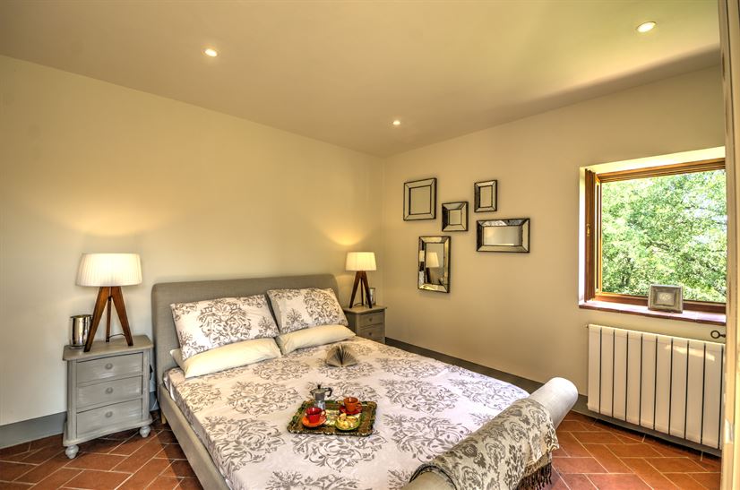 Die traditionelle Steinarchitektur wird durch toskanische Elemente wie Terrakottaböden und offene Holzbalkendecken ergänzt. Die Inneneinrichtung verbindet rustikalen Charme mit modernen, stilvollen Akzenten und schafft so ein behagliches Ambiente mit zeitgemäßem Komfort.