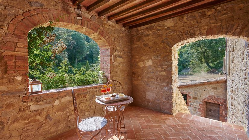 Das Natursteinhaus überzeugt mit toskanischem Flair: ein Innenhof mit Terrakottapflaster, ein klassischer Pizzaofen und eine überdachte Cabana mit großzügigem Essbereich im Freien laden zum Verweilen ein. Oberhalb des Hauses erwartet Sie der Infinity-Pool mit freiem Blick über die Hügel der Toskana.