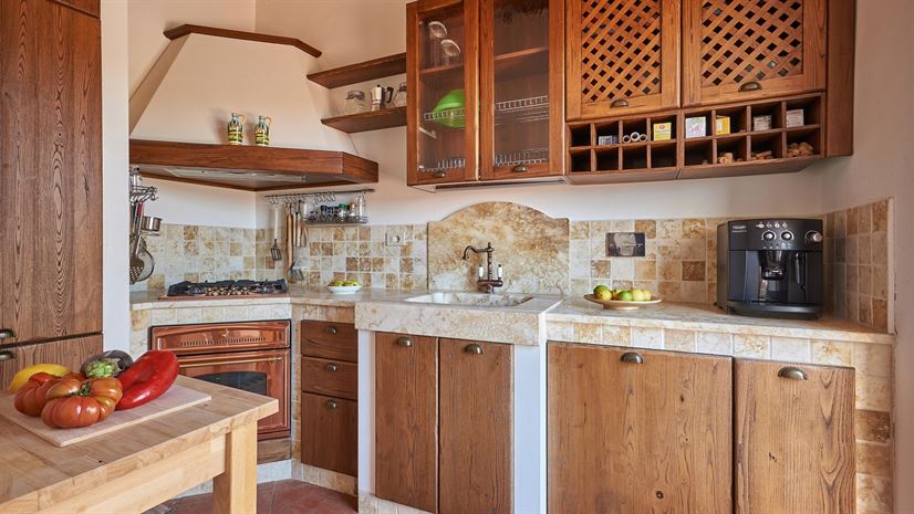 Komplett ausgestattet, Gasherd, Gefrier-Kühlschrank, Klimaanlage, Tür zur Terrasse, Terrasse mit Tisch und Stühlen, Sonnenliegen.
