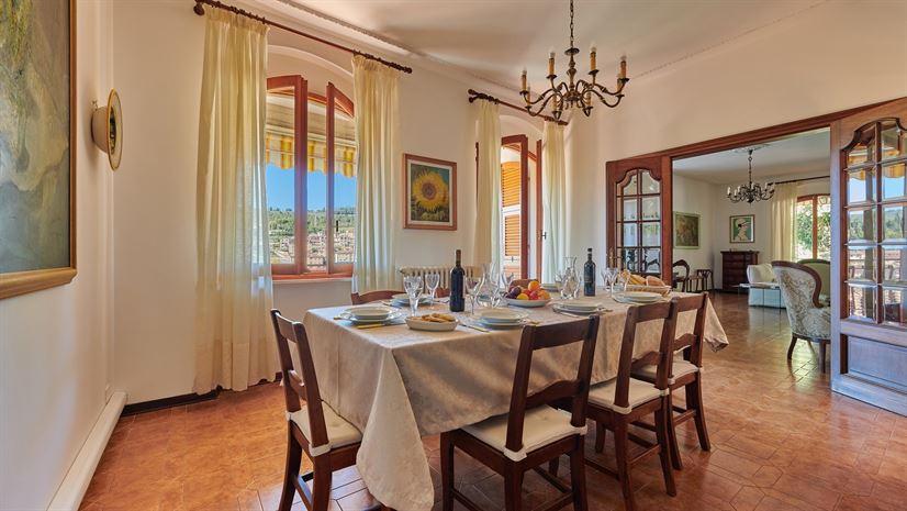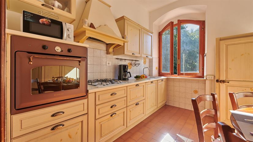 Villa Il Masseto ist ein traditionelles toskanisches Ferienhaus in ruhiger Lage am Ortsrand von Gaiole in Chianti, nur drei Gehminuten vom historischen Zentrum entfernt. Das Haus liegt leicht erhöht auf einem sanften Hügel, ist von Wald begrenzt und bietet einen wunderbaren Blick auf den Kirchturm und die Dächer des Ortes. Das leise Glockenläuten in der Ferne verleiht dem Aufenthalt eine unverwechselbar toskanische Atmosphäre und macht das Ferienhaus ideal für Familien oder Freundesgruppen, die entspannen und die Schönheit der Region genießen möchten.
